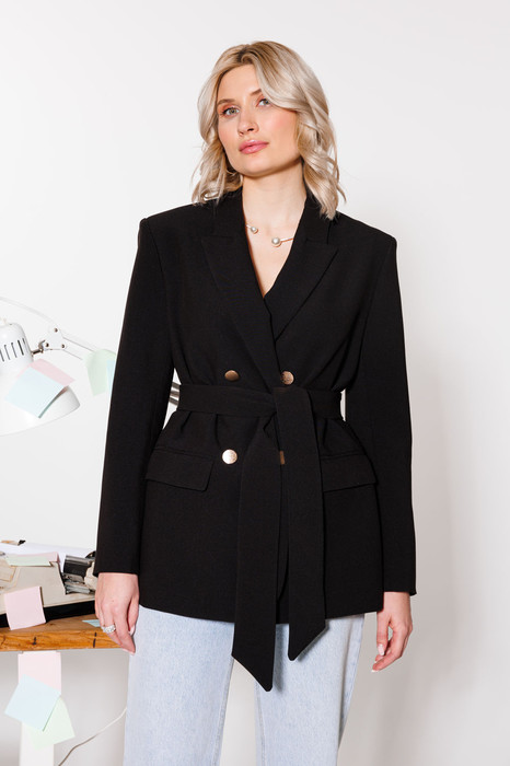 Прямой двубортный жакет на все времена — объемные плечи, треугольные лацканы, карманы с клапанами. Мы выбрали для него гладкую ткань на основе вискозы, а подкладку сделали контрастной, чтобы можно было носить жакет расстегнутым. Комбинируйте с брюками или джинсами. В комплекте идет пояс из основной ткани, чтоб вы могли сделать свой образ более романтичным когда есть такое настроение.Длина жакета 71 см, длина рукава 60 см.