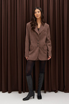 Классический приталенный жакет из текстильной ткани. Детали: жакет с отрезными бочками и нагрудными вытачками, пиджачный воротник, прорезные карманы, двубортная застежка на петли и пуговицы, спинка со средним швом, втачные двухшовные рукава, жакет на подкладке