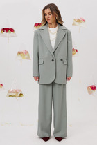 Укороченный оверсайз жакет с расширенными плечами. Детали: прямой силуэт, спущенная линия плеча, пиджачный воротник, перед с функциональным нагрудным карманом, застежка двубортная на петли и пуговицы, рукава втачные двухшовные, жакет на подкладке.