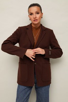 Укороченный оверсайз жакет с расширенными плечами. Детали: прямой силуэт, спущенная линия плеча, пиджачный воротник, перед с функциональным нагрудным карманом, застежка двубортная на петли и пуговицы, рукава втачные двухшовные, жакет на подкладке.
