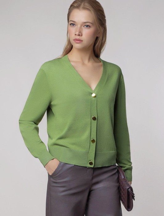 Состав: 83%Вис 17%ПА Параметры модели на первом фото: Рост 170, бюст 83, талия 64, бедра 88 Размер товара на первом фото: 42Жакет тонкой вязки выполнен из вискозы с нейлоном. Модель с V- вырезом дополнена золотистыми пуговицами и фирменным металлическим логотипом бренда. Мягкая пряжа приятная к коже позволяет носить изделие как первый слой, а также рекомендуем использовать как кардиган в многослойных образах поверх топа или платья.