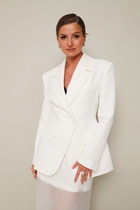 Комфортный летний жакет приталенного силуэта выполнен из легкой костюмной ткани. Цельнокроенный короткий рукав. Английский отложной воротник. Двубортная застежка на петли и пуговицы. По линии талии застрочены складки. Низ ровный, без разрезов.