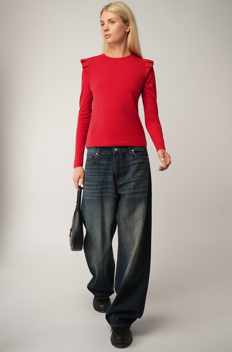 Женский лонгслив с крылышками — стильная деталь, которая моментально преображает образ и добавляет ему романтичности. Нарядный лонг подойдёт как на каждый день, так и для особых случаев.Преимущества:— однотонный темно-красный лонг выполнен из мягкого трикотажа на основе хлопка с лайкрой;— облегающий лонгслив подчёркивает фигуру, не сковывая движений;— крылышки на плечах придают образу лёгкость и женственность;— длинные рукава добавляют практичности и подходят для любого времени года;— бордовый цвет — стильный акцент, подчеркивающий индивидуальность;— хлопковый лонг идеален для осенних и весенних образов.Трикотажный лонгслив для женщин — отличное решение для тех, кто хочет выглядеть нежно, стильно и уверенно в любой ситуации. Демисезонный лонгслив подойдет на весну и осень.Рост модели 177, параметры: объем груди 85, объем талии 66, объем бедер 90. На ней размер 44.