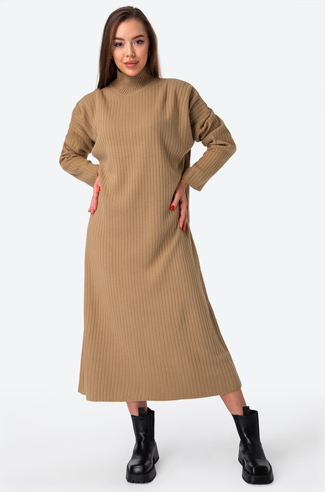 Теплое платье-свитер с длинным рукавом идеально подходит девушкам с разным типом фигуры. Актуальный оттенок кэмел и длина миди помогут создать притягательный повседневный образ на осень или зиму. Свободный крой оверсайз (oversize) не стесняет движений, в таком платье будет комфортно в течение всего дня.