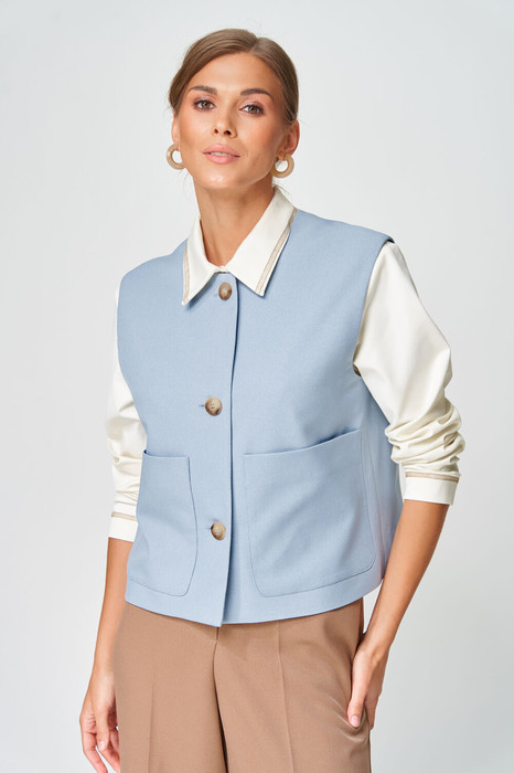 Жилет прямого свободного силуэта из костюмной ткани. Перед с настрочными карманами. Застежка на 3 петли и пуговицы. Жилет на подкладке. Длина жилета - 52 см. Данная модель прекрасно сочетается с другими моделями из нашей коллекции 15409, 35204. Создайте гармоничный образ, комбинируя эти изделия!