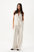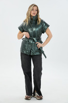 Жилет прямого свободного силуэта из теплой ткани "барашек". Перед с настрочными карманами. Застежка на 3 петли и пуговицы. Жилет на подкладке. Длина жилета - 52 см.
