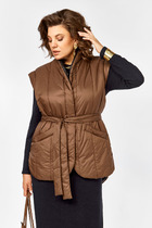 Жилет с центральной застежкой на петли и пуговицы, с V-образным вырезом горловины. По переду с талиевыми вытачками, прорезными карманами с листочкой. Спинка со средним швом, рельефами, выходящими из проймы. Низ жилета фигурный.