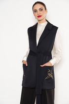 Жилет на молнии с капюшоном, тёмно-красный с рисунком павлопосадского платка.