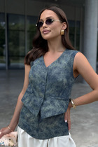 Совместные покупки Магнитогорск Женская одежда Жилеты — Жилет на молнии "Матрёшка" с воротником-стойкой, тёмно-синий