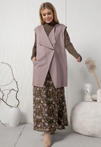 Женская утепленная жилетка с капюшоном - это идеальный вариант стильной и теплой женской безрукавки для демисезонного периода. Она изготовлена из качественного материала на синтепоне. Мягкий материал демисезонной жилетки имеет красивый вид, не шуршит и прост в уходе, не теряет форму после многочисленных стирок. Жилет прямого силуэта. Застежка центральная на молнии. По переду прорезные карманы с листочкой. Боковые швы оформлены декоративным шнуром. Капюшон не съемный.