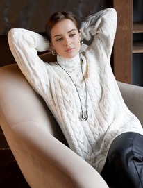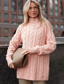 Удлиненный свитер фактурной вязки с узором косы