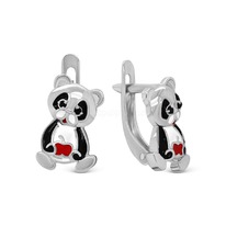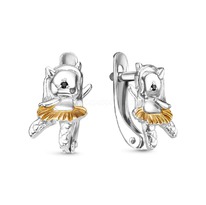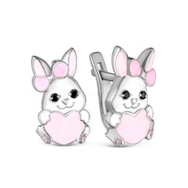 Серьги детские из серебра с эмалью и фианитами родированные - Зайчики, Зайцы