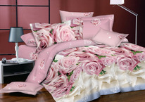 ВЛАДЛЕН КПБ из поплина простыня на резинке Нежная Роза 634