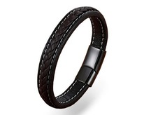Браслет, кожа , сталь, ALB138ч