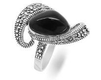 Кольцо, марказит , оникс, SL-AGA82