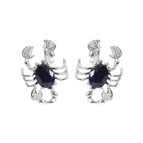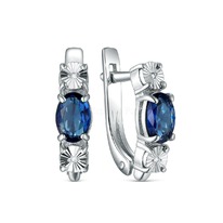 Серьги из серебра с натуральным сапфиром и кубическим цирконием родированные - С