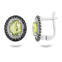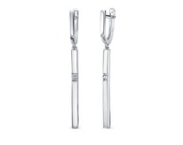 Серьги из серебра с бриллиантами и плавленым кварцем родированные