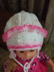Шапка для малышки на велсофте с помпоном зима 36-40