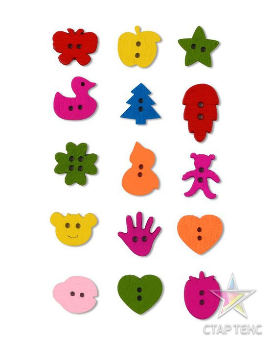 Декоративные элементы выполнены из дерева, имеют разную форму, цвет, два или четыре прокола.