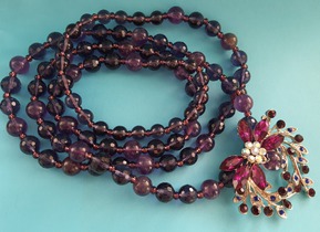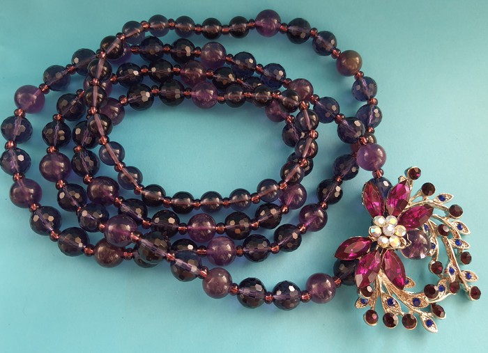 по центру бусы украшены красивой крупной подвеской с цветными стразами
