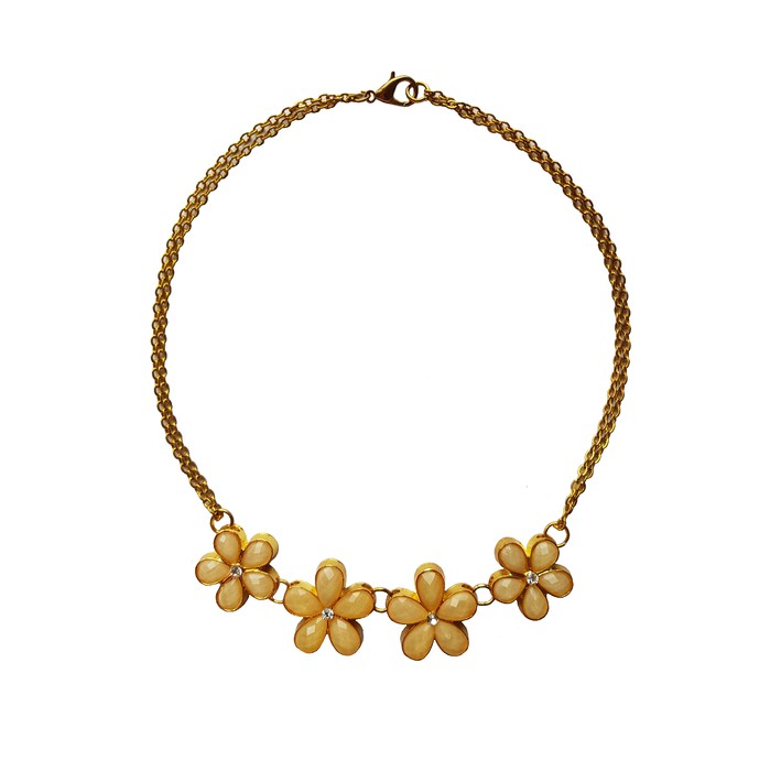 Новое ожерелье, металлическая двойная цепочка с 4 цветками.