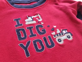 Б/У комплект известного, американского бренда Gymboree, Dig You 2-Piece Gymmies®. Комплект из 2 предметов. Футболка с длинным рукавом. Аппликация с вышивкой «I DIG YOU». И леггинсы с принтом техники по всей поверхности. Машинная стирка. Цвет: True Red. Состав: 100% хлопок. Размер: 2T для мальчика 2 лет, ростом 84-91,5 см, весом 13,5-15 кг. Состояние: б/у, отличное.