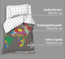 Комплект постельного белья из бязи Карта Мира на русском