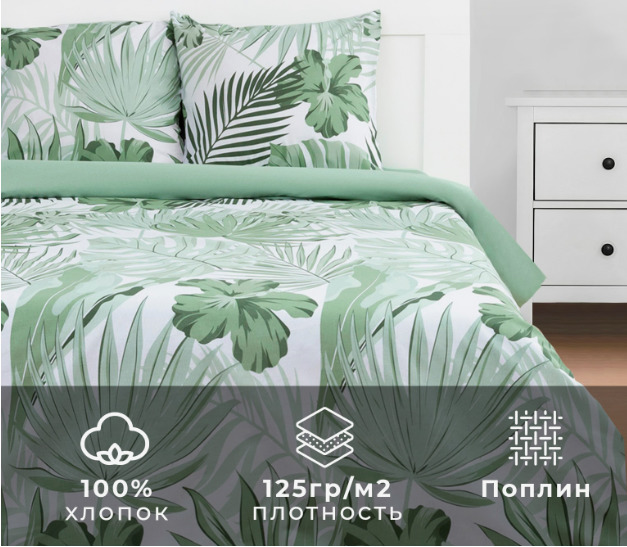 — Комплект постельного белья из поплина Тропики зелёный