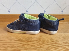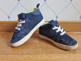 Б/У кроссовки известного, американского бренда Carters, High Top Sneakers. Комфорт, стиль и универсальность сочетаются в этих современных кроссовках с искусственной шнуровкой спереди. Верх из ткани с застежкой на липучку через петлю. Мягкие стельки. Петли для шкафчиков. Цвет: Navy. Состав: верх 100% текстиль, подошва 100% резина. Размер: 8 US, наш 23, длина стопы 14,6 см. Состояние: б/у, хорошее.