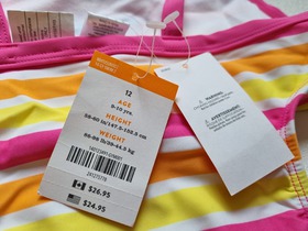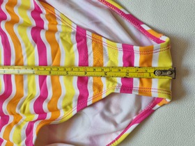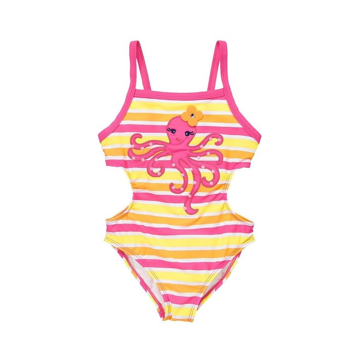 Новый купальник известного, американского бренда Gymboree, Octopus Cut-Out One-Piece Swimsuit. Особенность: с вышивкой, стразой и аппликацией в виде осьминожки. Защита от ультрафиолета UPF 50+. Цвет: Sunset Stripe. Состав: 82% нейлон, 18% спандекс. Размер: 12 для девочки 12 лет, ростом 147,5-152,5 см. Замеры: ширина между бретелек 19 см, ширина между подмышек 34 см, ширина бедер 34 см, длина от паха до выреза груди 51 см, длина от паха до края бретелек 69 см.