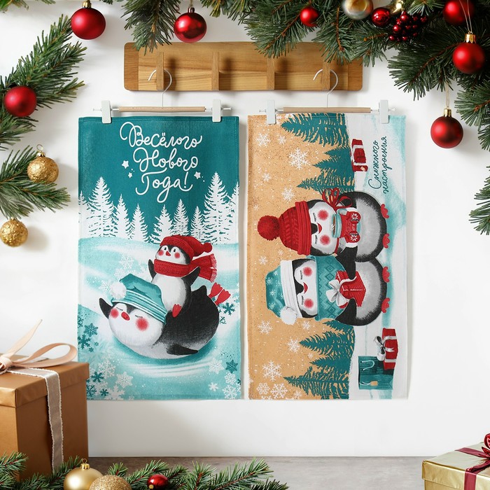 Набор кухонных полотенец из рогожки С рождеством 35*60см (2шт)
