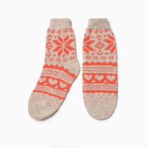 Носки шерстяные женские Снежинки и сердечки бежевый р25-27
