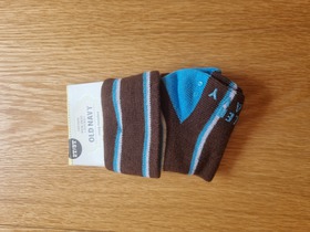Новые носки известного американского бренда Old Navy, Printed Socks for Baby — это дочерняя ветка известного среди почитателей качественной одежды и аксессуаров в доступном ценовом сегменте бренда GAP. Полосатые носки, на каждый день. Мягкая смесь хлопка с удобной эластичностью. Текстурированные резиновые логотипы на подошве (нескользящая подошва). Цвет: Blue/Brown Stripe. Состав: 75% хлопок, 22% полиэстер, 2 спандекс. Размер: 2T/3T, для мальчика 2-3 лет ростом 86-99 см. Длина стопы 14-17 см.
