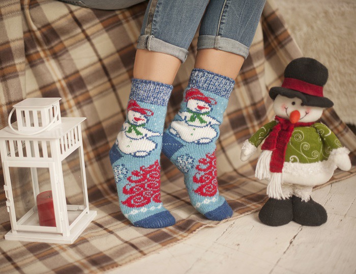Носки шерстяные укороченные Снегири на ветке р-р 23