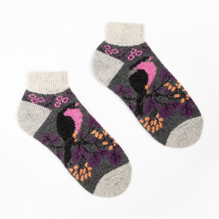 Носки шерстяные женские короткие Снегири т-серый р25
