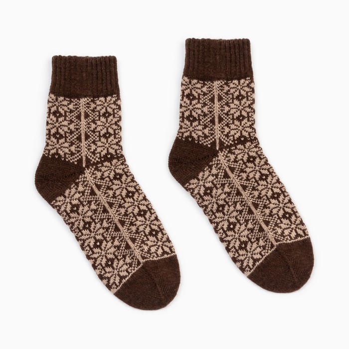 Заказать Носки шерстяные женские Снежинки жаккард коричневый 23-25