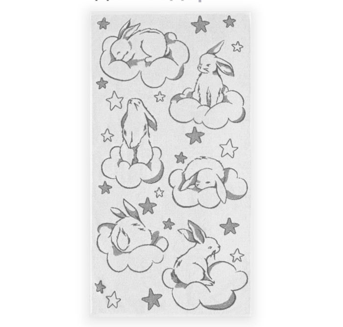 — Полотенце детское махровое Зайки на облаках белое