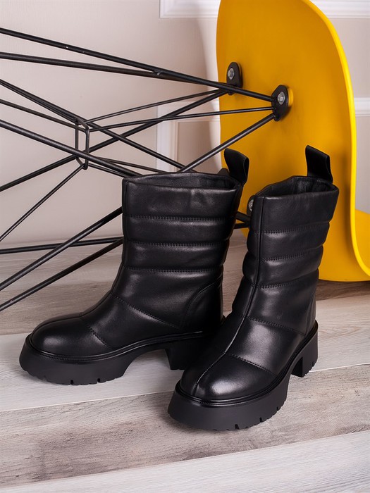 Ультрамодные кожаные дутики на толстой подошве с устойчивым каблуком утепленные нетуральным мехом!