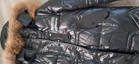 Зимнее пальто для девочки, размер 152 см (12 лет). Теплое, удобное и легкое. Черный цвет делает его универсальным. Длина рукава 60 см, длина изделия 88 см, ширина плеч 40 см. Пальто имеет капюшон и воротник для дополнительной защиты от ветра и холода. Состояние отличное, кроме небольшого швачка в районе спины (зашито аккуратно).