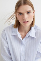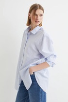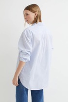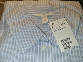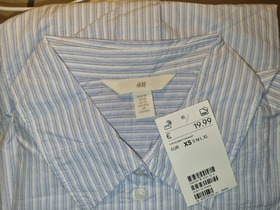 Новая рубашка известного шведского бренда H&M, Poplin Shirt. Рубашка свободного кроя из хлопкового поплина. Воротник, пуговицы спереди и двухслойная кокетка сзади со складкой. Заниженная линия плеча, длинные рукава и широкие манжеты на пуговицах. Закругленный низ, удлиненный сзади. Машинная стирка. Цвет: Light blue/striped. Состав: 100% хлопок Размер: XS. Замеры: длина по спинке 81 см, длина рукава по внешнему шву 56 см, по внутреннему 45 см, ширина между плечевыми швами 48 см, ширина между подмышек 53 см, ширина подола 60 см.