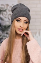 Вязаная шапка-колпак «Лори» с фольгированным напылением и отворотом. 2018 год принёс в мир моды новую тенденцию – фольгированное напыление на ткани. Таким образом придавая изящность изделию. Именно так зародилась идея создания этой модели головного убора. Эта шапка-колпак двойная, её внешнее полотно по окружности декорировано напылением различных оттенков, в зависимости от цвета полотна.