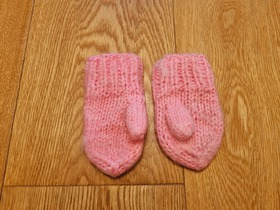 Б/У шерстяные вязаные варежки. Отличное решение на прохладное время года. Цвет: розовый. Состав: 100% шерсть. Размер 12-18 M, для девочки 12-18 месяцев, ростом 75-85. Состояние: б/у, отличное.