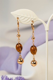 Серьги посеребрённые с янтарём "солнце" 17*19мм коньячный